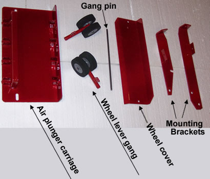 - Air plungers activate wheel lever gangs on planter unit.